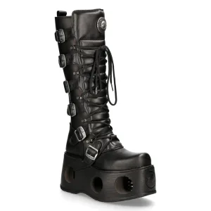 New Rock M-272-S2 Neptuno Metallic Kniehoge Zwarte Leren Gothic Laarzen