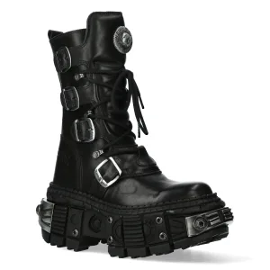 New Rock unisex zwart lederen gevechtsplatformlaarzen – TANK373-S1