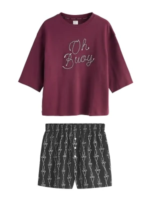 Next Pyjama lichtlila / oudroze / donkerrood / wit