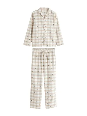 Next Pyjama lang beige / crème / donkergroen