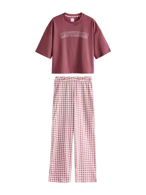 Next Pyjama navy / smaragd / robijnrood / karmijnrood