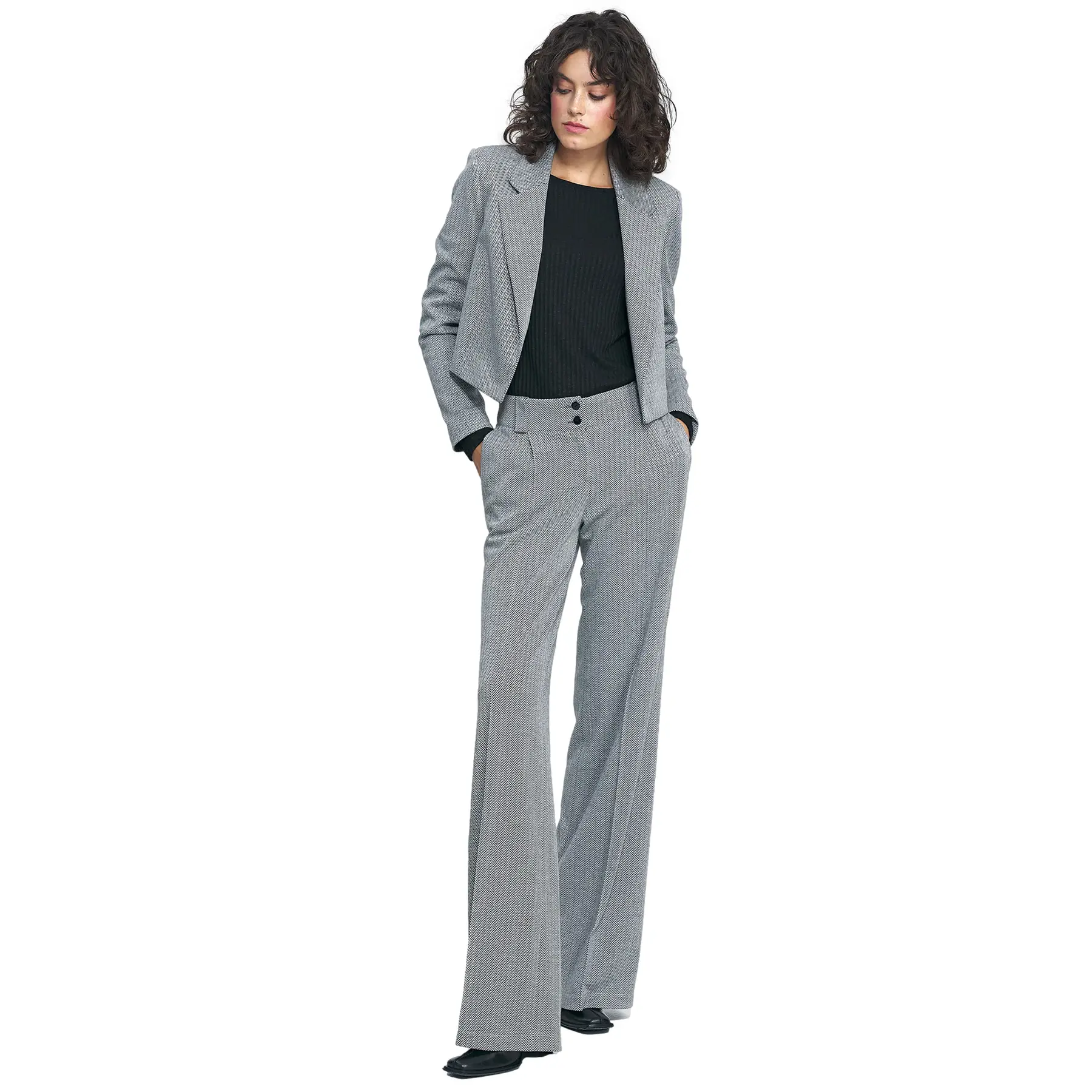 Vrouwen brede pantalons met een visgraatmotief Nife