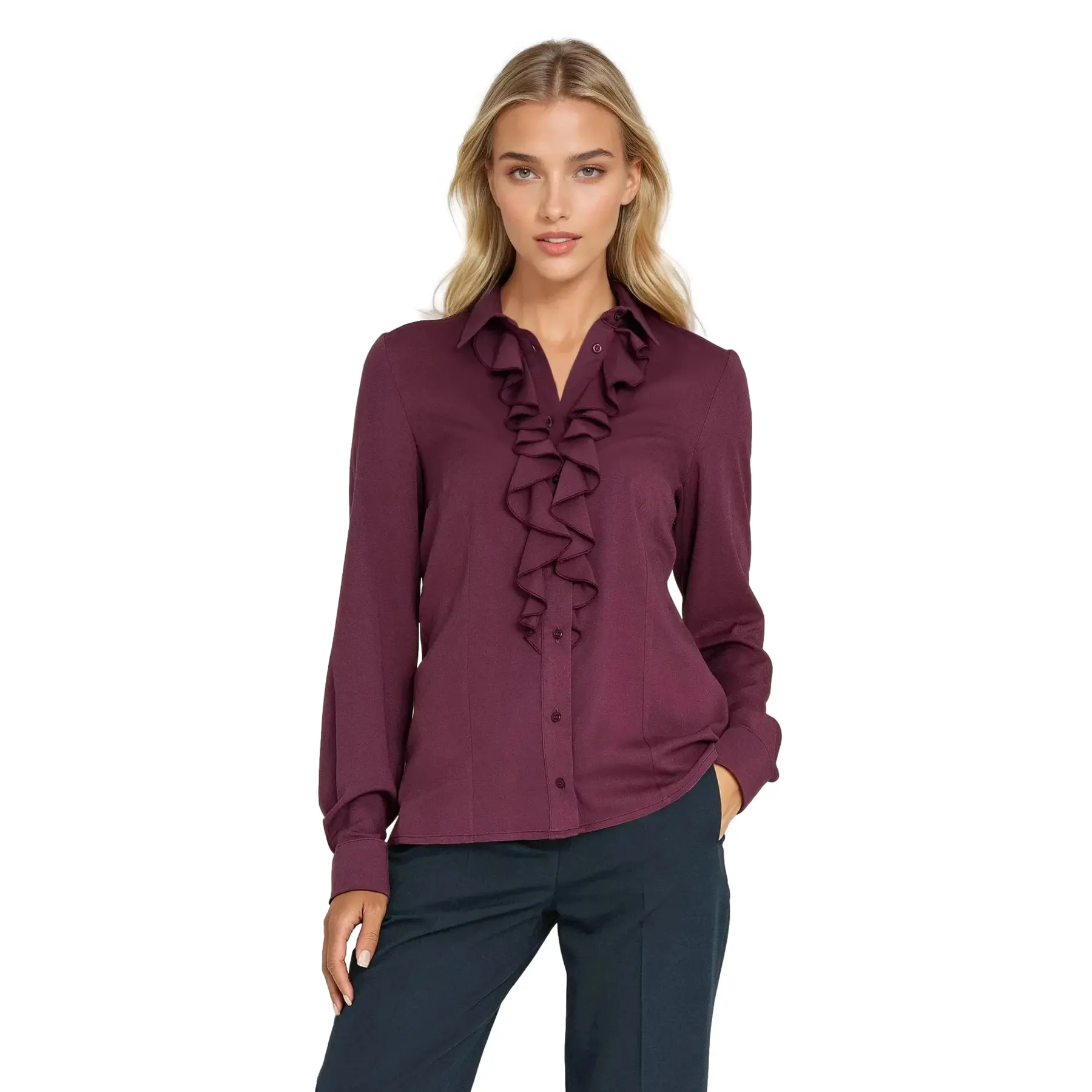 Vrouwen polo blouse van viscose met hoge kraag Nife