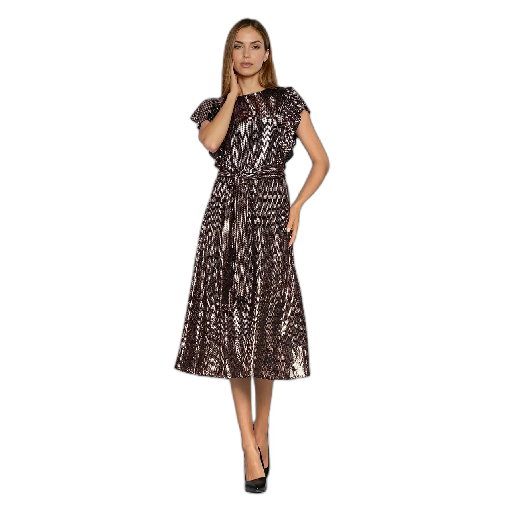 Vrouwelijke jurk met schoudervolants Nife
