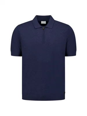No Excess Pullover Short Sleeve Polo Melange With Linen Deep Blue