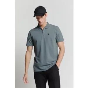 No Excess Polo Zip Pique Garment Dyed Washed Blue