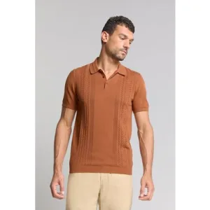 No Excess Pullover Short Sleeve Polo Solid Placed Jacquard Caramel