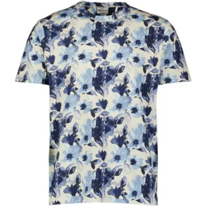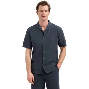 No Excess Shirt Short Sleeve Allover Printed Stretch Washed Blue