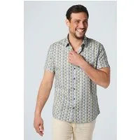 No Excess Shirt Short Sleeve Allover Printed Stretch Washed Blue