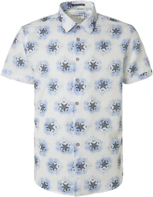No Excess Short Sleeve Overhemd Linnen Blauw Print