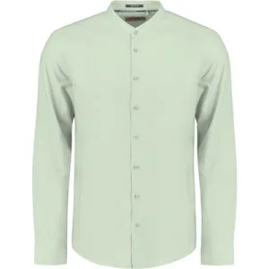 No Excess Shirt Granddad Solid With Linen Mint