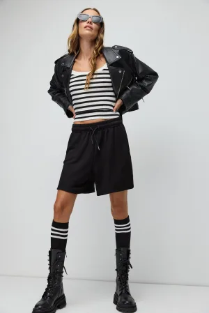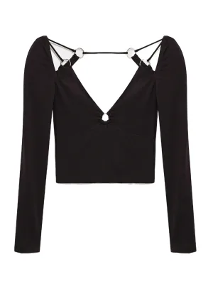 Zwart Kant Crop Top met Lange Dunne Bandjes