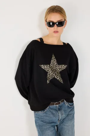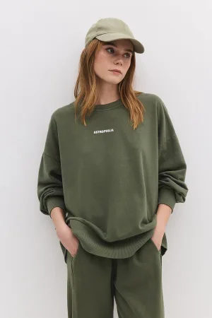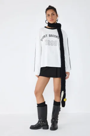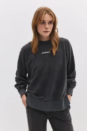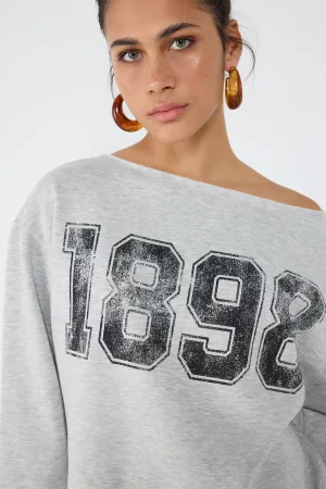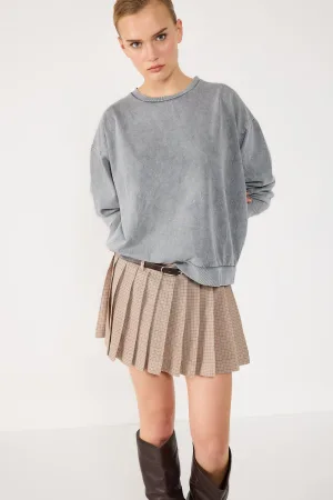 Sweat-shirt oversize imprimé délavé à manches longues et col ras du cou