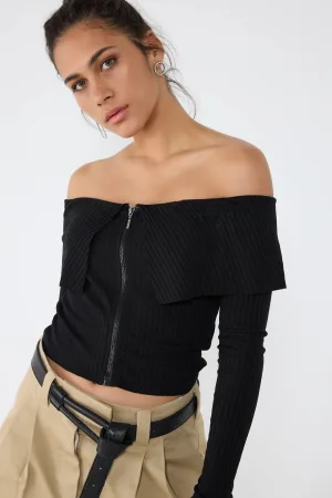 Fiets Hals Geribbelde Gebreide Crop Top
