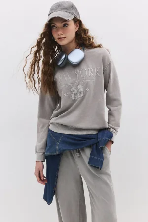 Sweat-shirt à slogan effet délavé