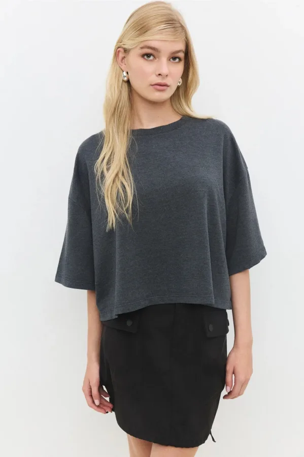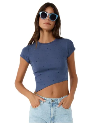T-shirt court côtelé brodé de pierres
