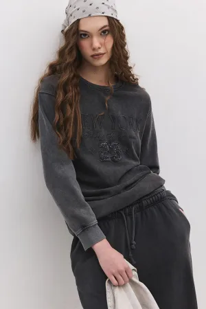 Sweat-shirt à slogan effet délavé
