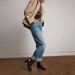No Stress – Dames – Bruine leren enkellaarsjes met hak –