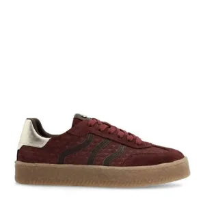 No Stress – Dames – Burgundy leren sneakers met suède details –