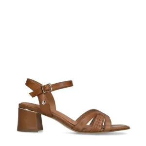 No Stress leren sandalettes blokhak cognac