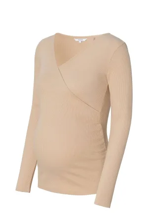 Noppies maternity ribgebreid zwangerschapsshirt Sanson beige