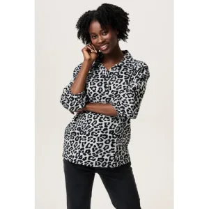 Noppies maternity zwangerschaps blousetop met panterprint grijs