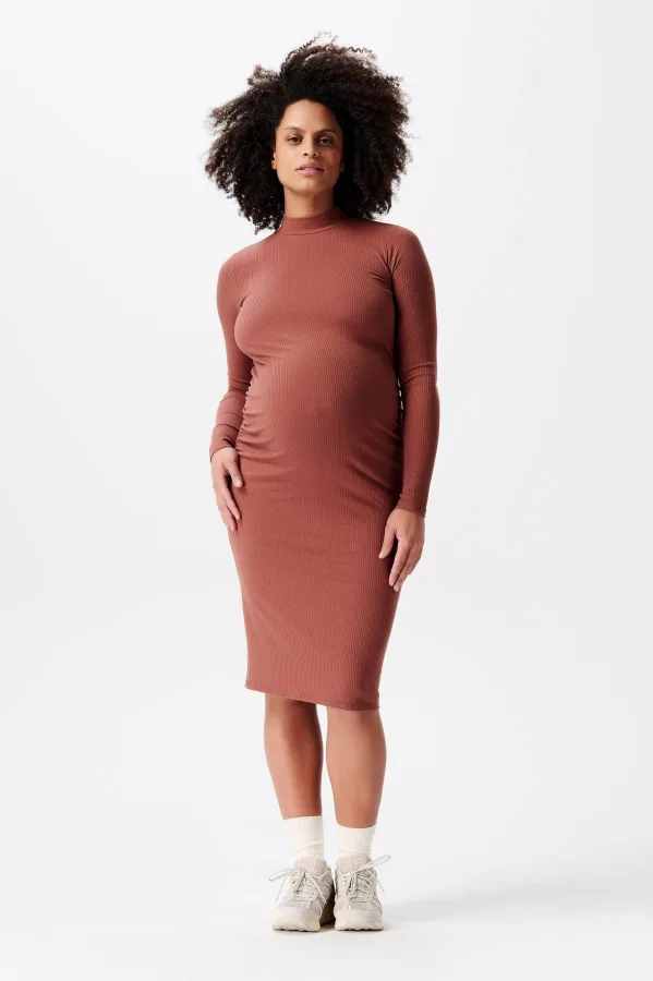 Noppies maternity ribgebreide zwangerschapsjurk Aima van polyester roodbruin