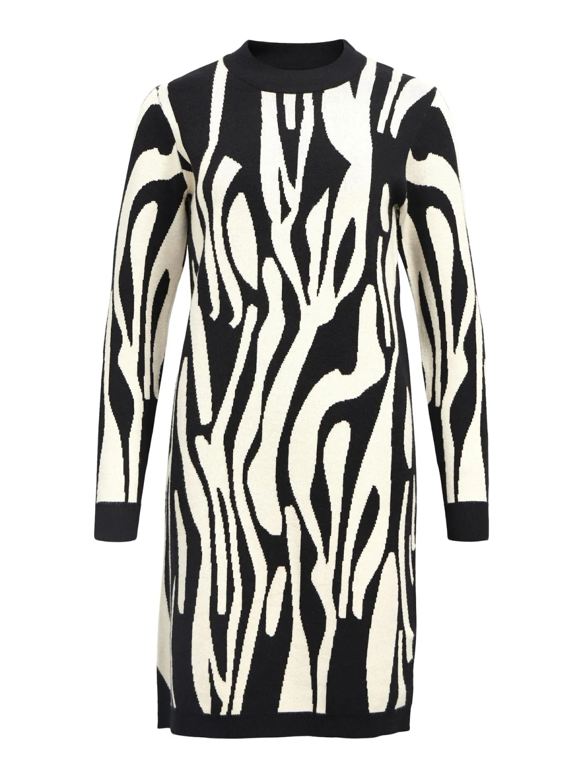 Object Objray L/s Knit Dress Aop Jurken Dames – Kleedje – Rok – Jurk – Zwart –