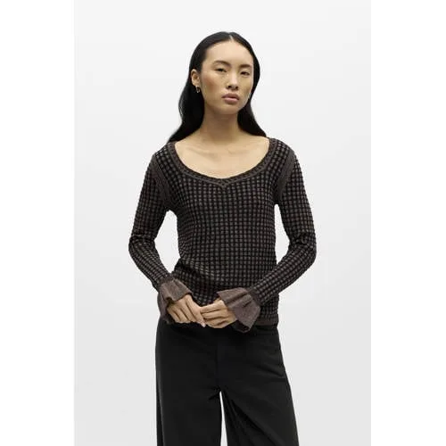 OBJECT geruit top donkerbruin gebreid