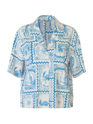 Object Broek Objlisa Wide Pant Aop Noos 23040544 Cloud Dancer/cornflower Blue Dames