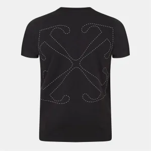 Heren Off White Stitch Slim Fit Crew Neck Korte Mouwen T-Shirt in Zwart-Wit