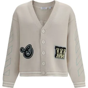 Heren Off White 3D Diagonaal gebreid crewneck sweatshirt in crème