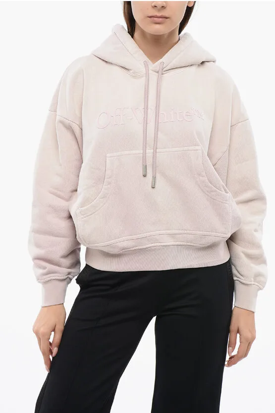 Geborstelde katoenen hoodie met juwelen in het zwart