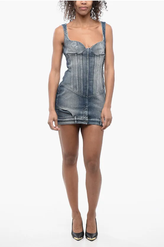 Denim mini-jurk met sweetheart-halslijn in blauw