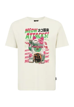 Oldskull Shirt ‘Asian Lucky Cat Attack Graphic’ offwhite