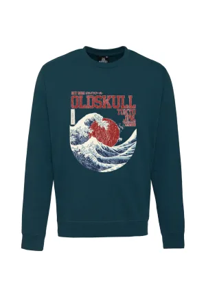 Oldskull Sweatshirt ‘Retro Japan Island’ donkergroen