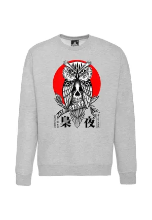 Oldskull Sweatshirt ‘ASIAN SECRET OWL SKULL’ grijs