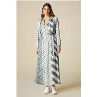 Oltre Long Patterned Satin Dress Grey