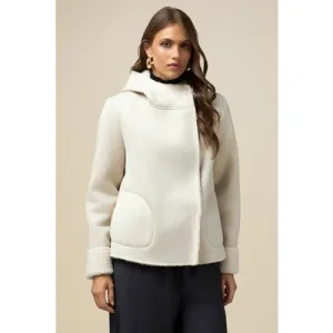 Oltre Hooded Faux Sheepskin Jacket White