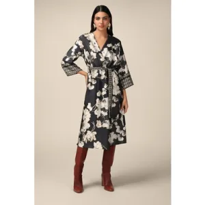 Oltre Floral Satin Midi Dress Black