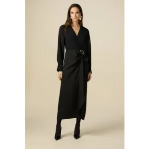 Oltre Long Dress With Satin Skirt Black