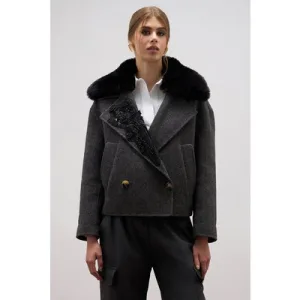 Oltre Short Coat With Jewel Patch Grey