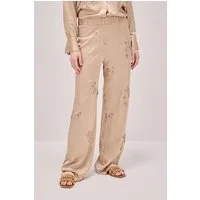 Oltre Satin Trousers With Sequin Embroidery Beige