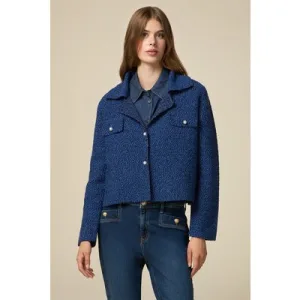 Oltre Wool Blend Knit Boxy Jacket Blue