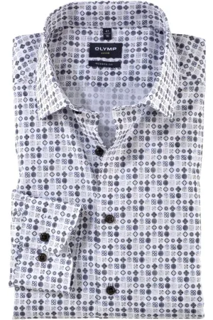 OLYMP Luxor Overhemd wit, Bedrukt