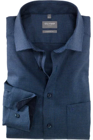 OLYMP Luxor Overhemd marine, Pied De Poule