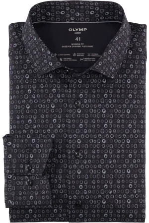 OLYMP Luxor 24/Seven Overhemd zwart, Motief