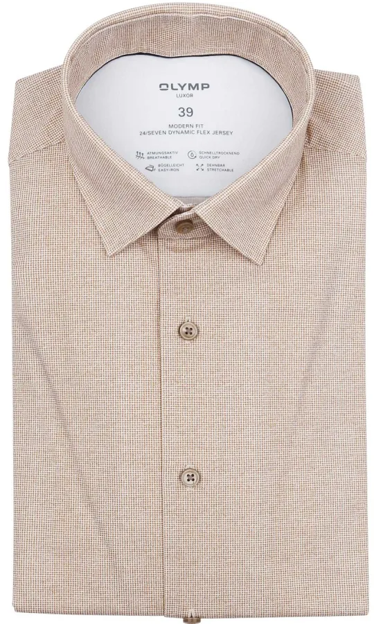 Olymp Luxor Overhemd Pied De Poule Bruin