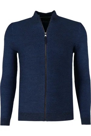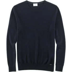 OLYMP Casual Regular Fit Trui ronde hals blauw, Gestructureerd