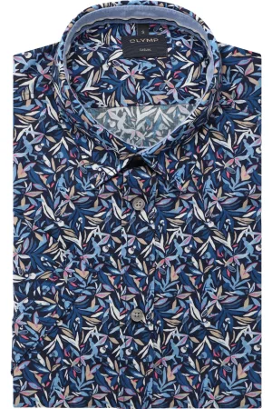 Olymp Luxor Overhemd Extra Lange Mouw Bloemenprint Blauw